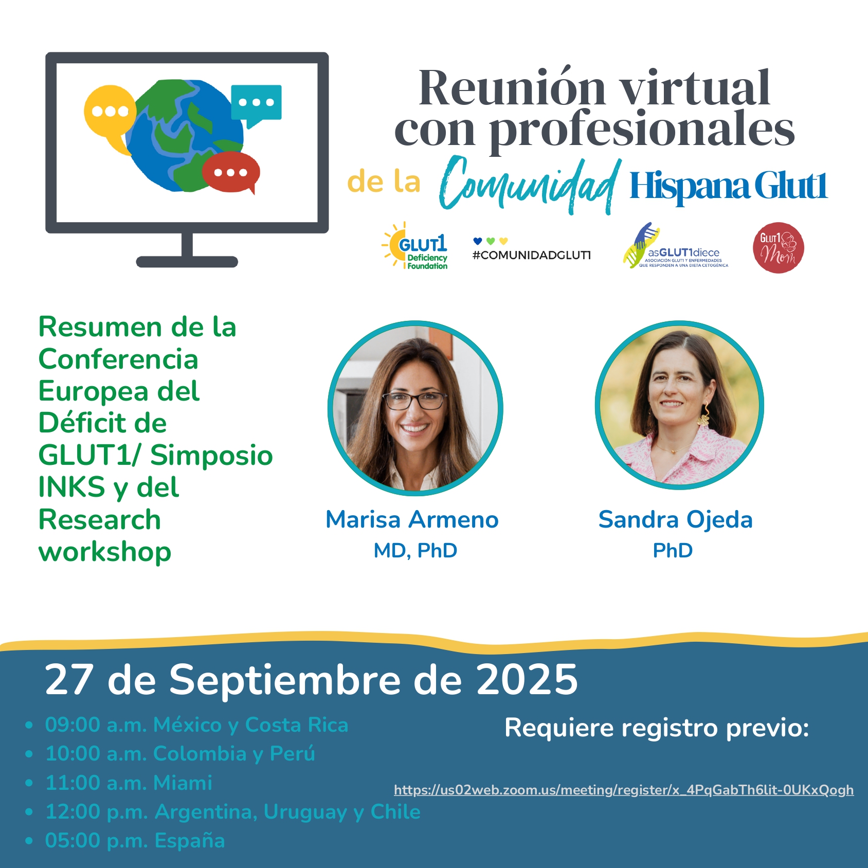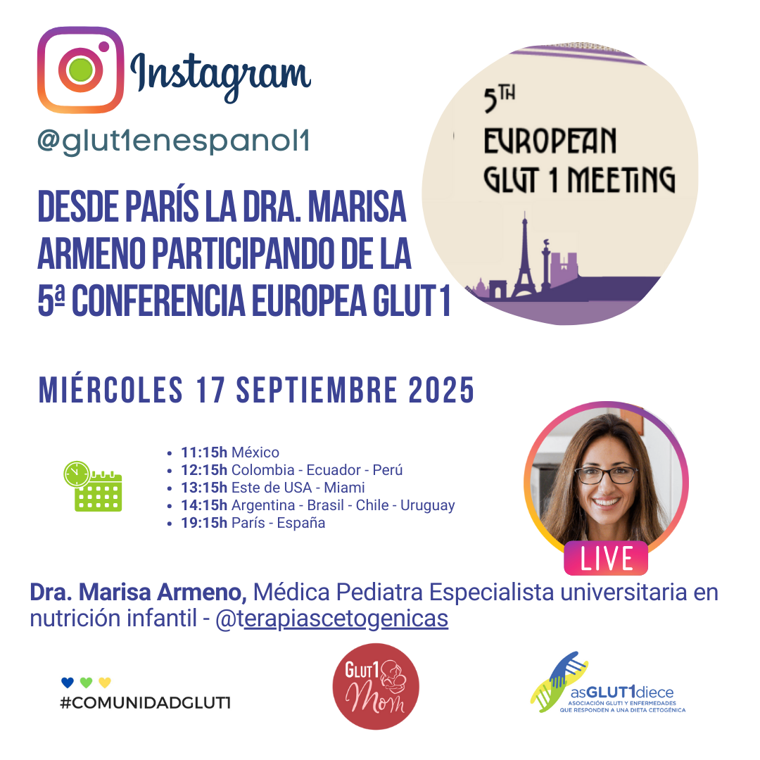 El sábado 27 de septiembre de 2025, en nuestra reunión mensual de la Comunidad Hispana Glut1, hemos organizado desde nuestra Asociación asGLUT1diece junto a la Glut1 Deficiency Foundation, un encuentro con dos invitadas muy especiales. Por una parte estará la Dra. Marisa Armeno, miembro del Comité Científico de Global Keto Paris 2025 que nos hablará […] |